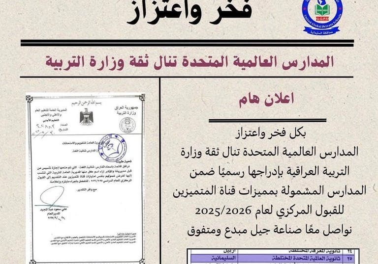نقوم برعاية العقول الشابة بمناهج حديثة متجذرة في التميز الأكاديمي وقيم المجتمع في صفوف التربية الخاصة والنخبة وثنائية اللغة